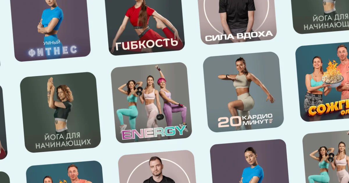 10 основных фитнес-занятий и 10 коротких тренировок по растяжке уже ждут тебя.