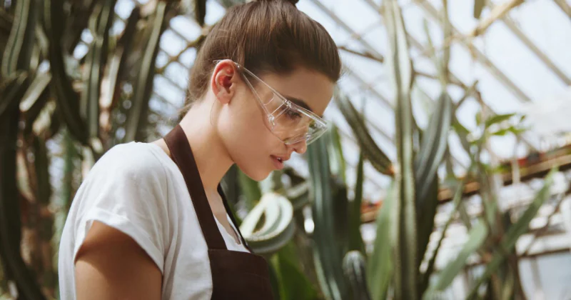 Очки должны быть не просто солнечными, а специально предназначенными для садовых работ. Они обеспечивают защиту от механических повреждений, химических веществ и ультрафиолета. Лучше всего выбирать модели с широкими дужками и боковой защитой.