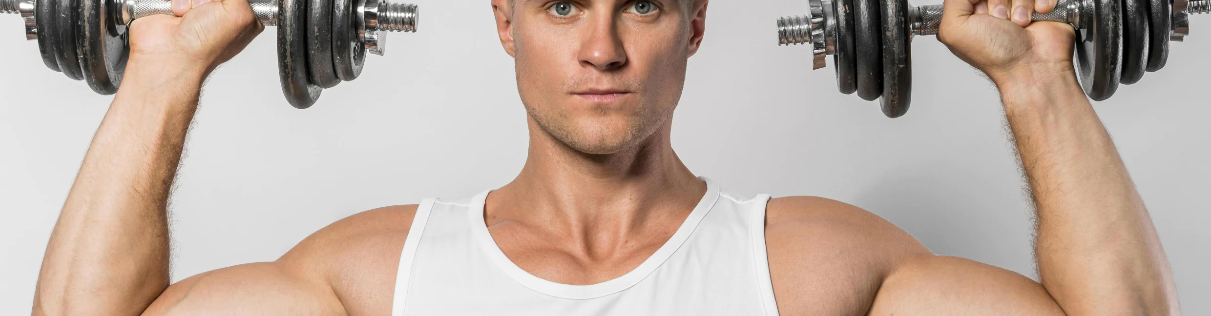 Если есть мышечный дисбаланс, армейский жим с гантелями поможет его убрать — достаточно на более слабое плечо давать больше нагрузку, или выжимать гантель одной рукой.