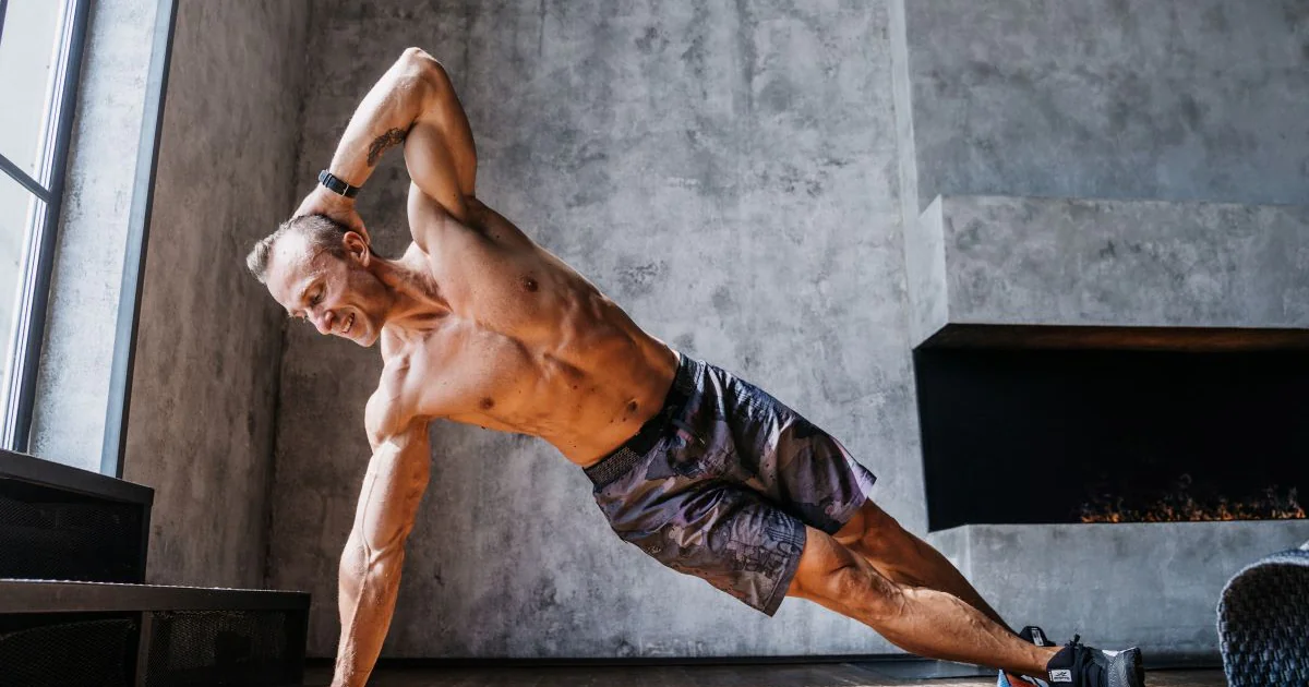 Начни с упрощённой версии. Вместо того чтобы опираться на кисть, опирайся на предплечье и локоть. Это снизит нагрузку на боковые мышцы и сделает упражнение более доступным для начинающих.