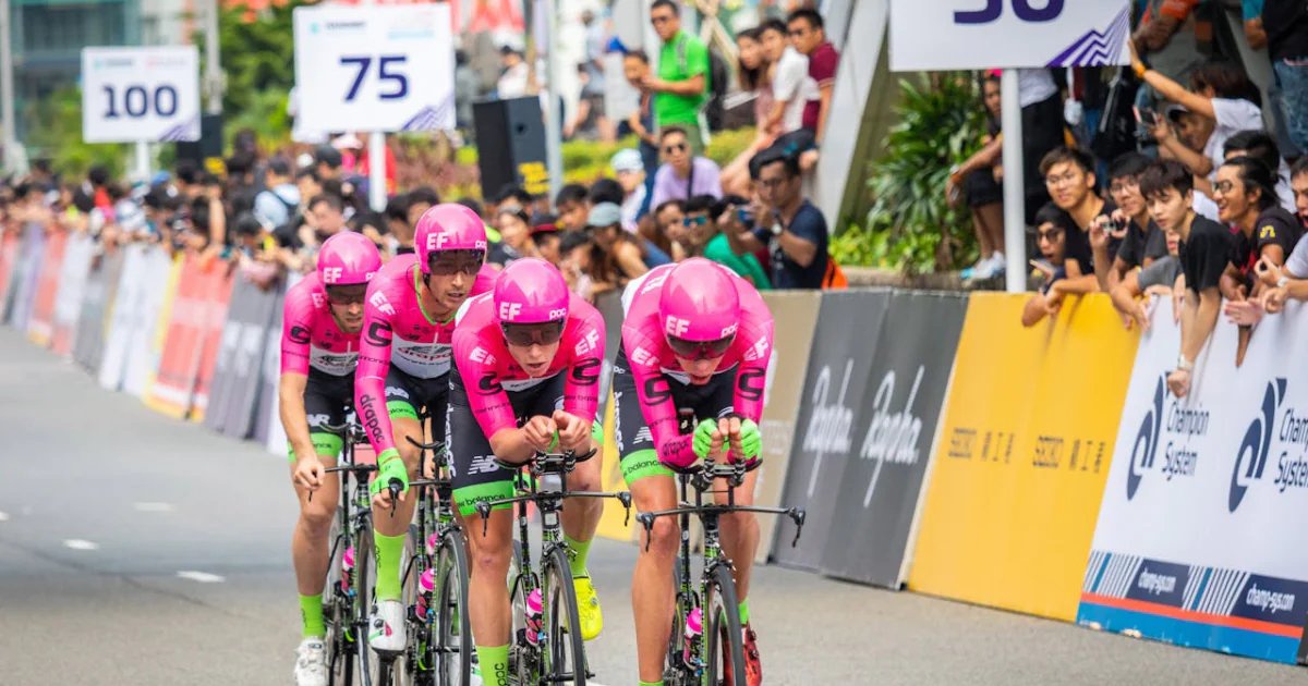 Для велогонки: велоэкипировка (шлем, стартовый костюм, велотуфли), очки, шоссейный или ТТ-велосипед с контактными педалями, показателями пульса, мощности, каденса (частота педалирования), инструменты.