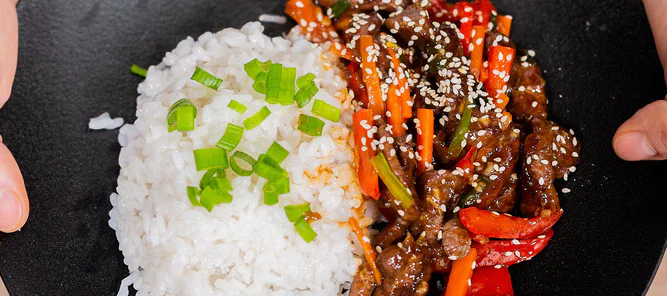 Подавайте говядину с рисом.