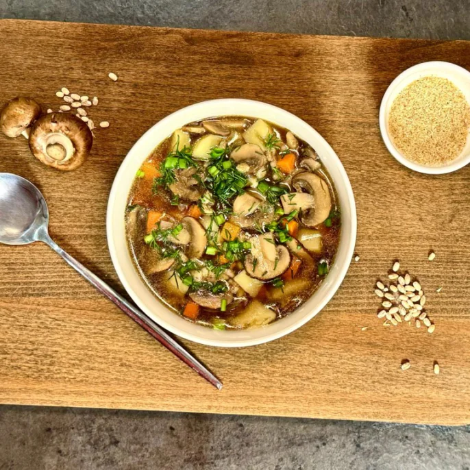 Постный грибной суп с перловкой
