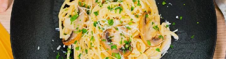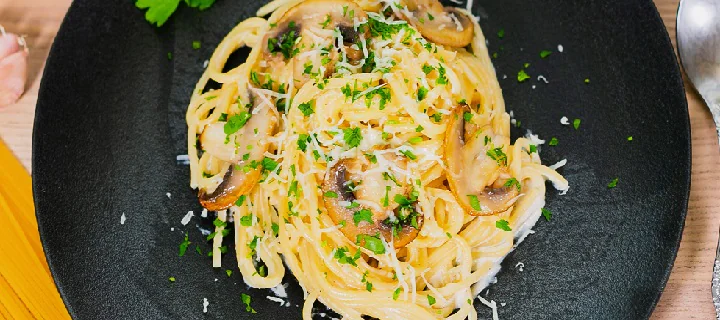 Спагетти с грибами в сливках