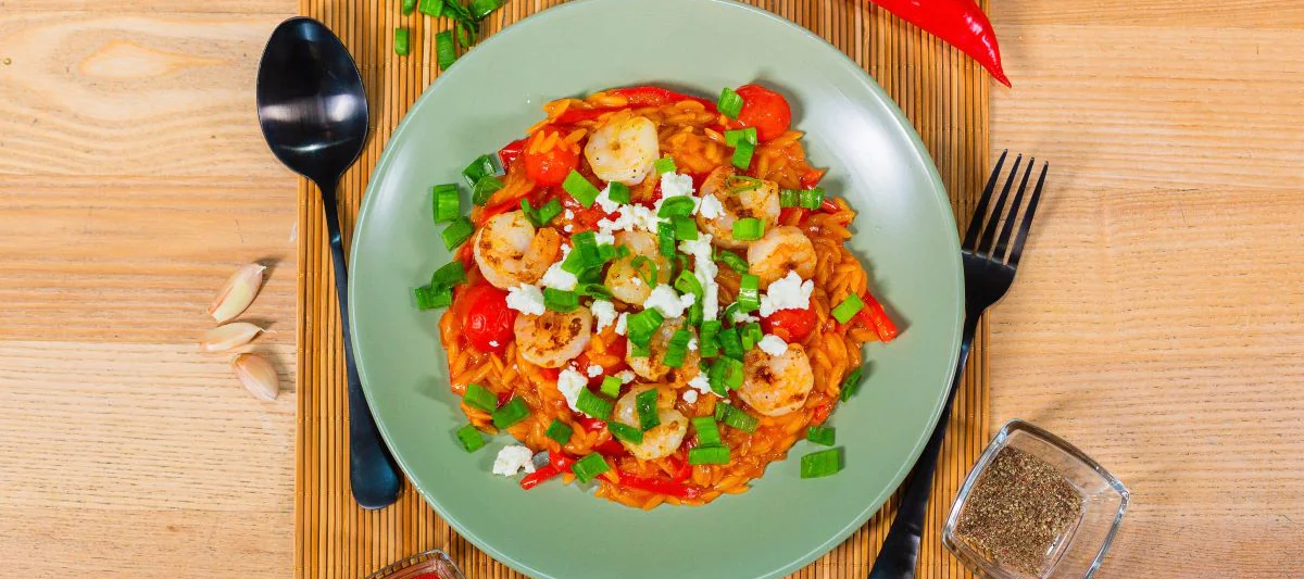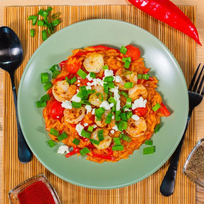 Томатное орзо с креветками